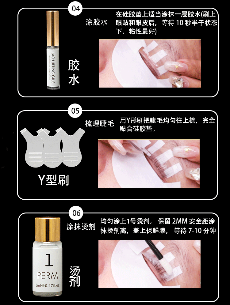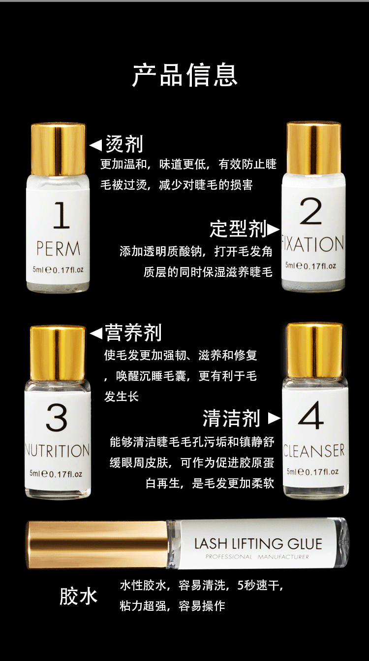 • Lash Lift Glue: Strong-hold adhesive to secure lashes precisely on the silicone pads.