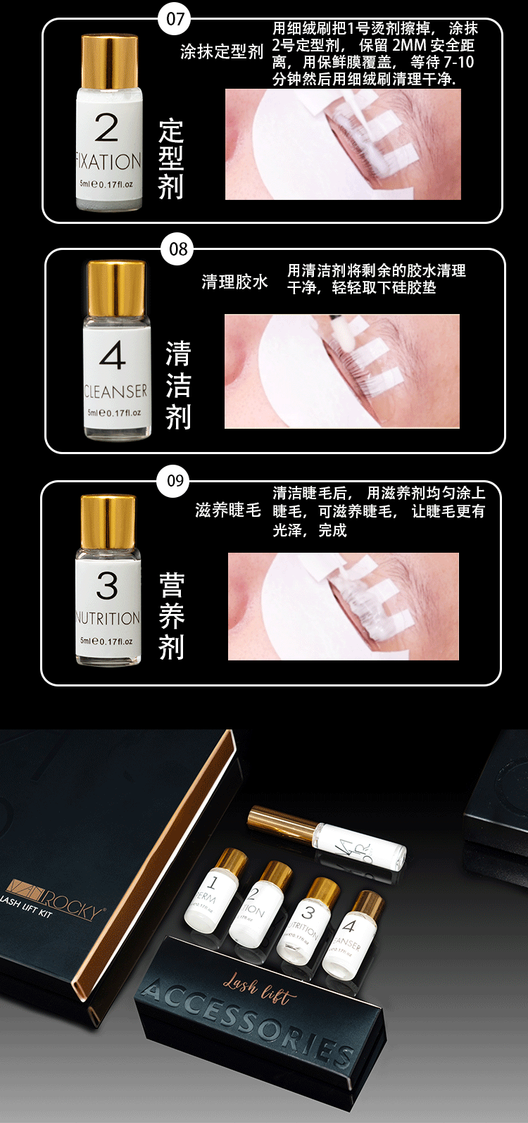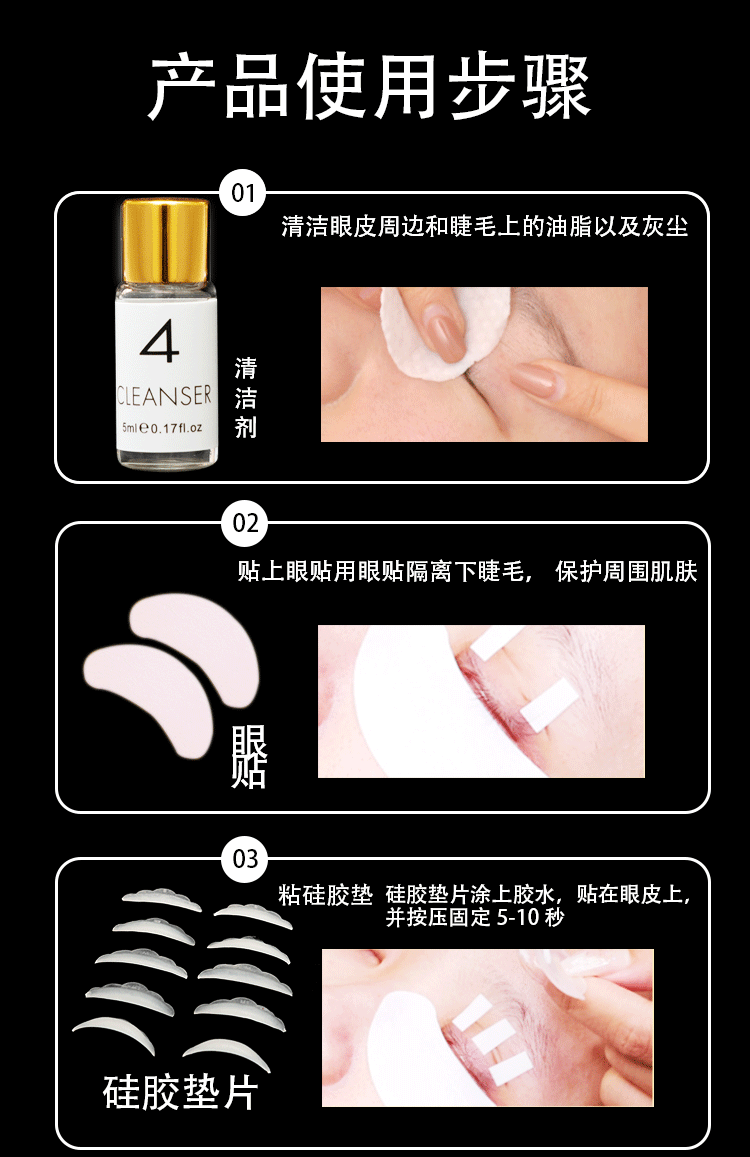 1. Cleanse: Use the #4 Cleanser to remove oil and dust from the lashes.